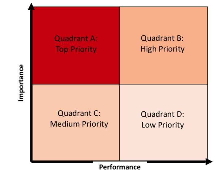- The performance-importance matrix provides insights about the relationship between a facility’s performance score and level of importance of the items in a particular domain of care from the patient’s point of view.